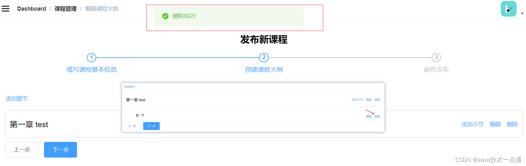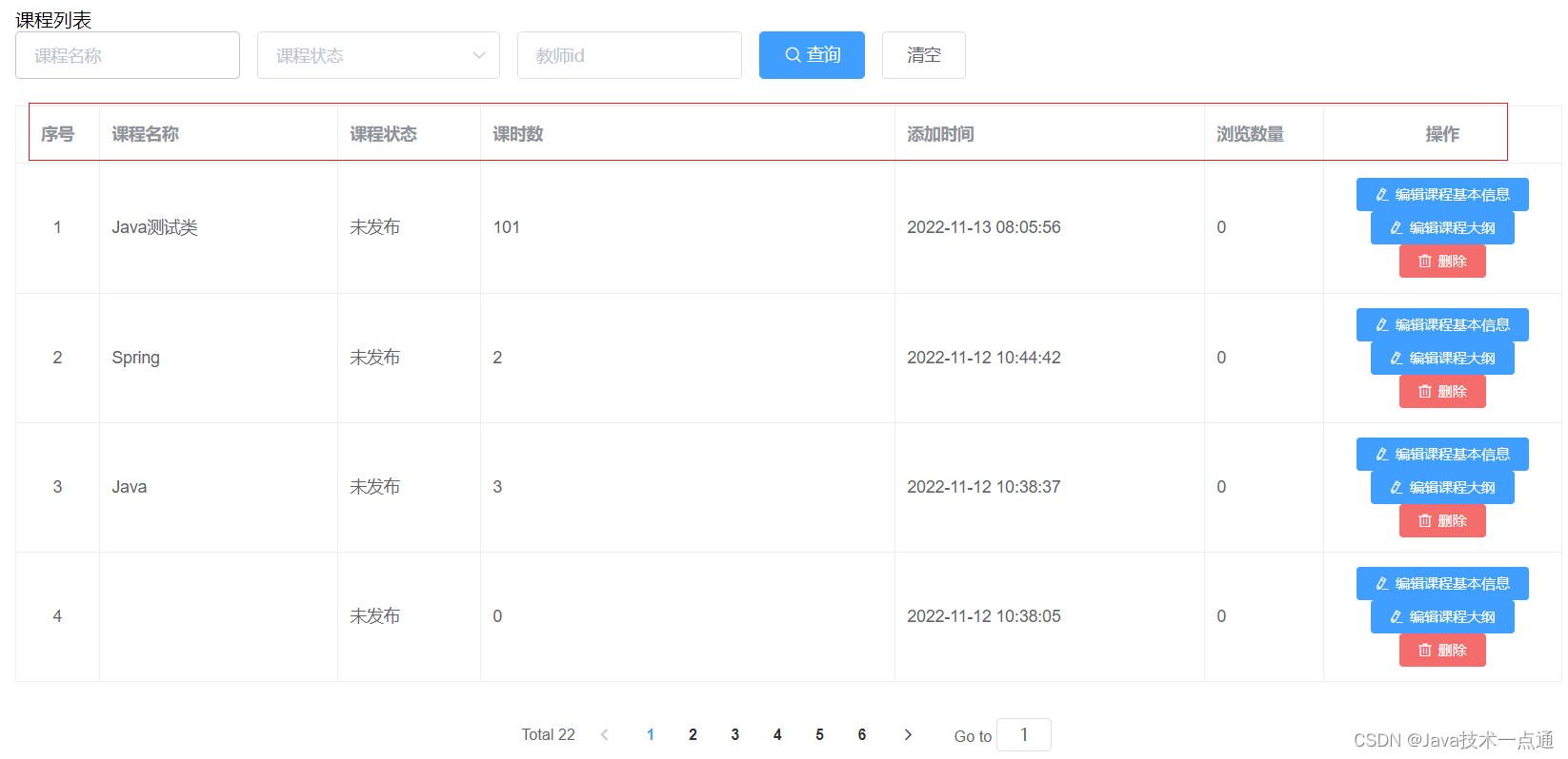 3. 课程列表删除课程功能