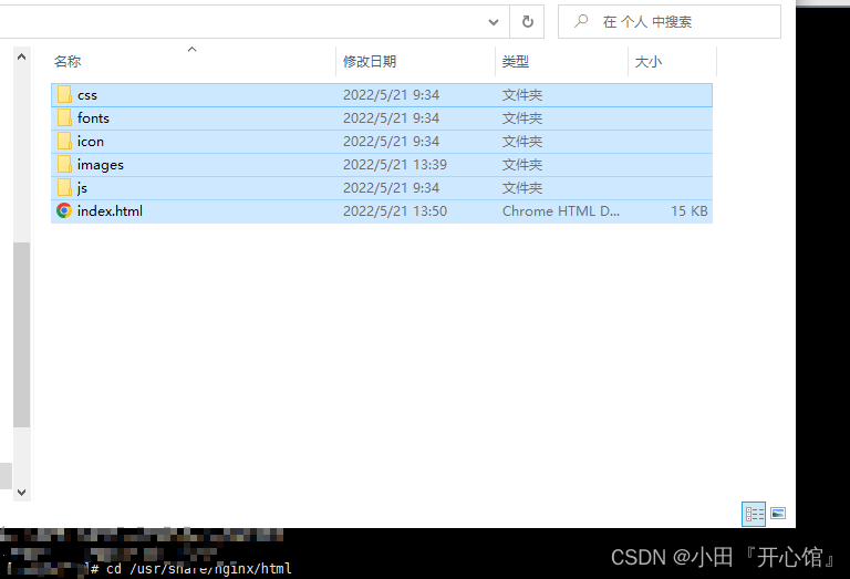 # 输入代码rm -rf index.html 将自己的网页直接拖拽进目录下即可,然后查看是否成功。全选文件,直接拖拽