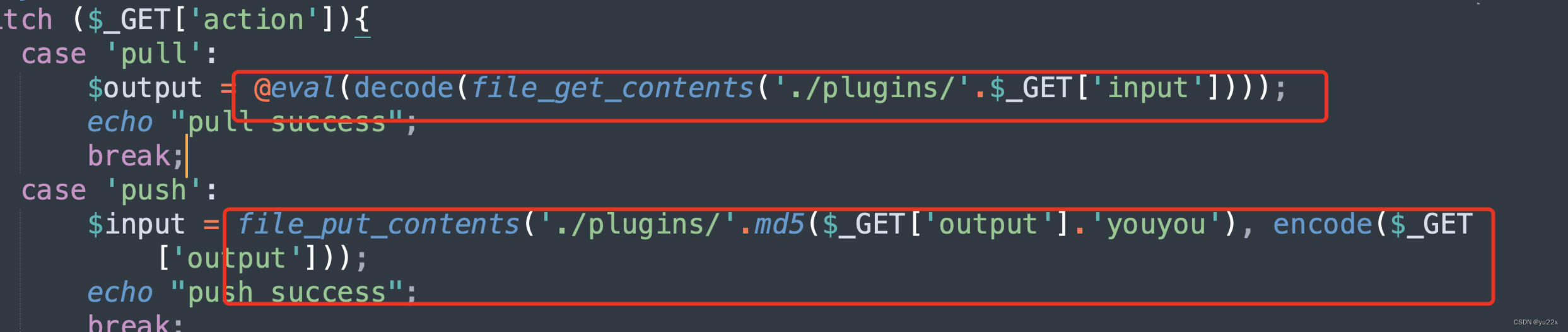 然后如果在传入action=pull&input=刚才生成的文件路径就可以运行刚才的代码了。