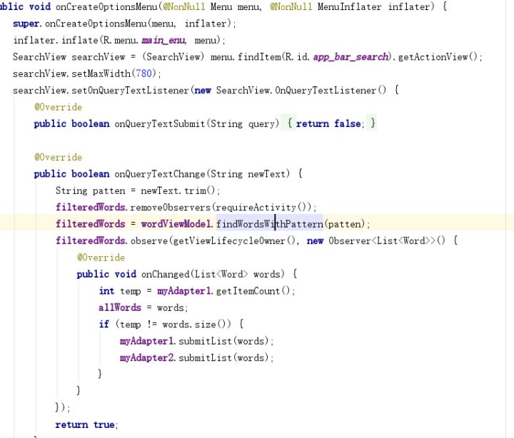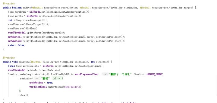 当通过监听WordViewModel发现数据发生改变时,会同时增删改单词列表条数