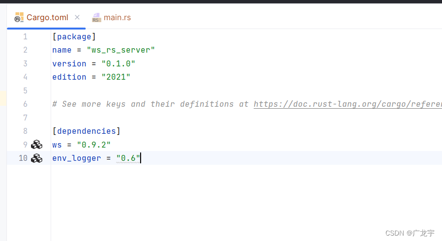 然后添加依赖,将以下内容加入到工程Cargo.toml