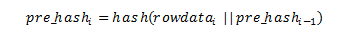 pre_hash将历史表的当前行数据和上一行的pre_hash数据进行拼接,生成当前用户历史表的数据整体摘要,计算公式如下: