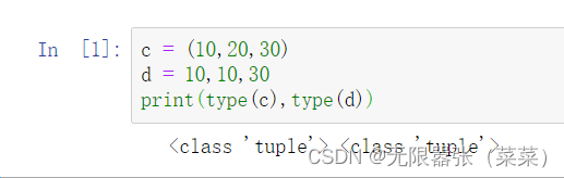 c = (10,20,30)d = 10,10,30print(type(c),type(d)) 2.通过tuple()创建元组