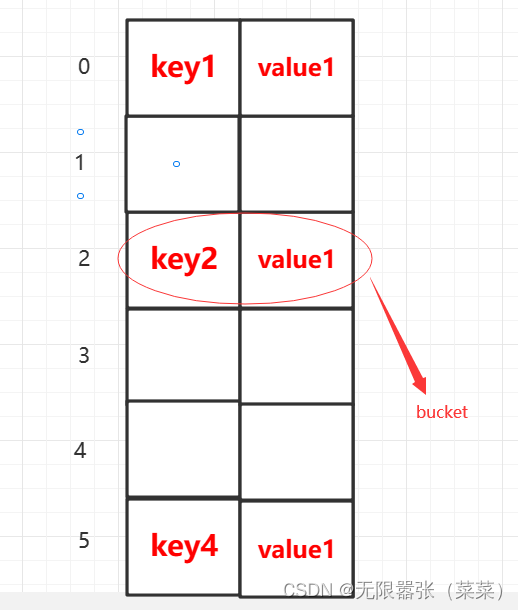 由于数组长度为8,我们可以拿计算出的散列值的最右边3位数字作为偏移量,即“101”,十进制是数字5。我们查看偏移量5,对应的bucket是否为空。如果为空,则将键值对放不进去。如果不为空,则依次取右边3位作为偏移量,即 "100",十进制是数字。如果都满了,数组将扩容。