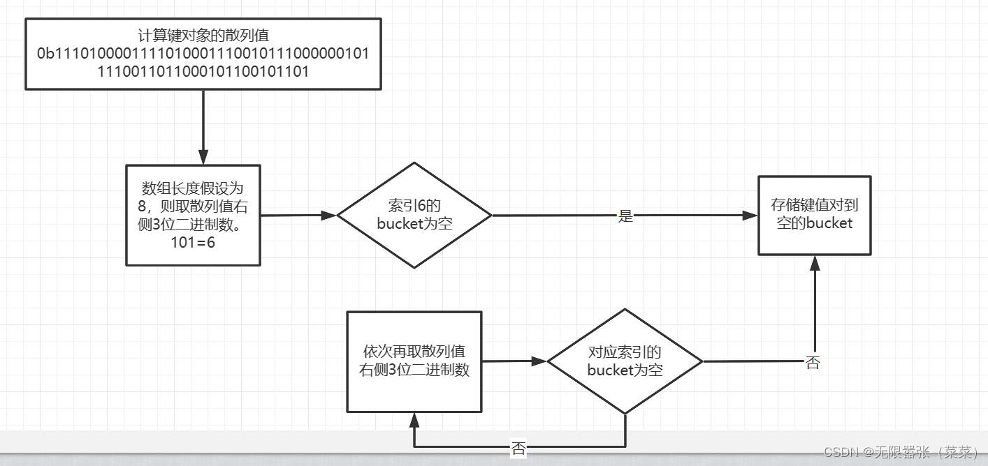再查看偏移量为4的bucket是否为空。直到找到为空的bucket将键值对放进去,流程图如下:
