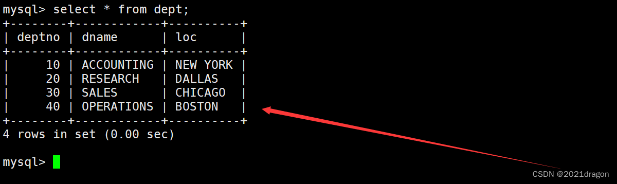 而题目要求同时列出没有员工的部门,也就是部门表当中的内容需要完全被显示出来,如果在连接部门表和员工表时将部门表放在左侧,那么就可以使用左外连接。如下: