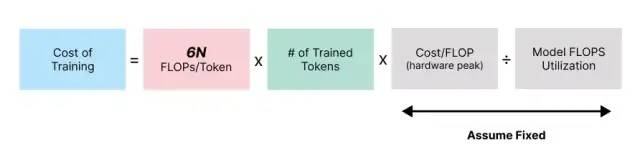 如今,SOTA大型语言模型通常会用到可比较的模型架构(最常见的是仅包含解码器的Transformer模型),在推理过程中每个token的计算成本(以FLOPs为指标)约为2N,其中N为模型参数数量(model parameter count)[14]。
