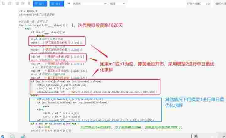 然后先针对第一天,基于预测的明天价格,构建一个目标规划,目的是实现已经知道第二日的价格后,如果投入才能实现当前交易日价格的最大化,其中交易的真实利益可以根据基于预测价格实施的投资策略后,通过真实第二天价格计算当天投资策略的盈利,然后重复这个过程,直到持有金额败光或者5年交易期结束,停止循环。