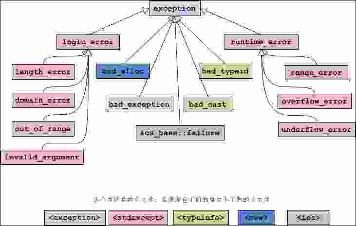 | std::out_of_range | 该异常可以通过方法抛出,例如 std::vector 和 std::bitset<>::operator。 |