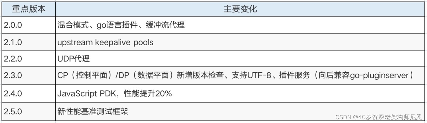 团队摸余(鱼)工程师对开源项目 Kong 的版本发布一直保持着较高的关注度,总结两年来 Kong 主要版本升级新特性: