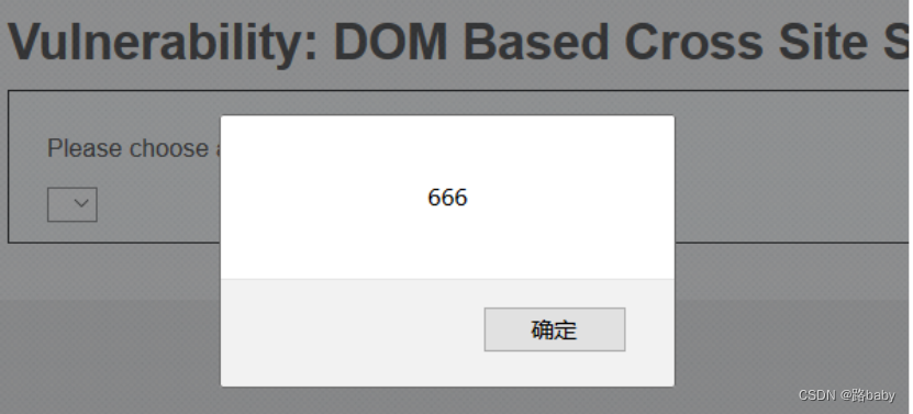 所以我们可以构造XSS代码,访问链接:http://127.0.0.1/dvwa1/vulnerabilities/xss_d/?default=<script>alert(666)</script>