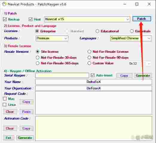 2、products选择Premium; languages选择 Simplified Chinese,点击patch 弹出窗口,然后看下一步