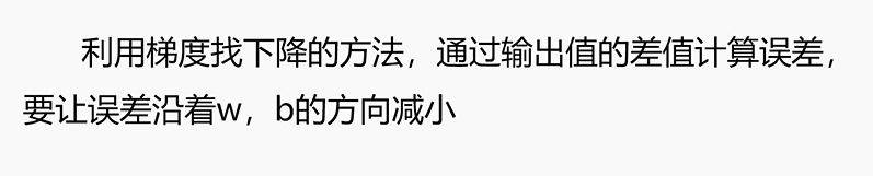 在我们的获得预测结果后,我们通过反向传播对w(权重)和b(偏置:相当于y=ax+b中的b)进行梯度调整,从而得到最优的w和b。最后在应用调整后的模型进行测试