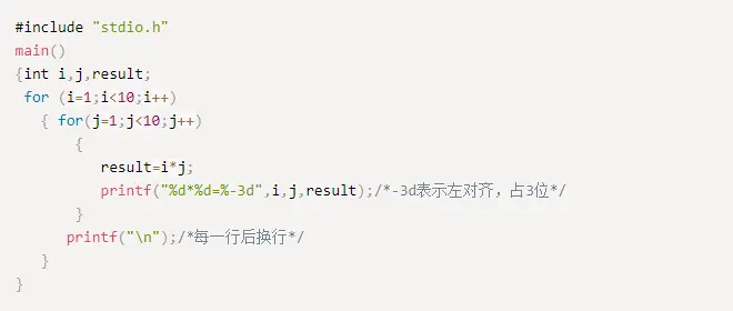 用C语言输出9*9成法口诀。共9行9列,i控制行,j控制列。