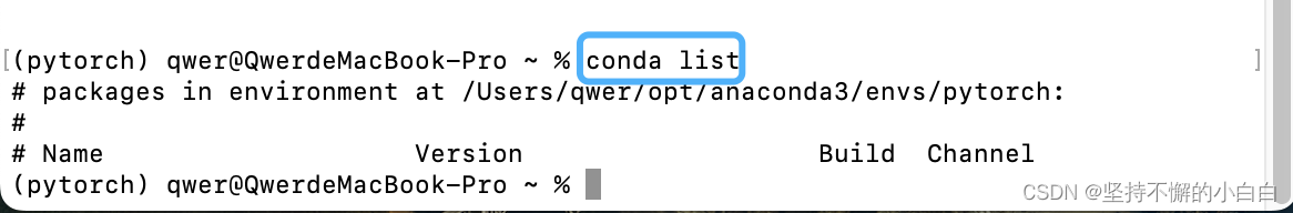 下载结束输入conda list命令查看包可以看到pytorch已经安装: