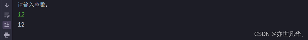 // 步骤一:导入 Scanner这个类import java.util.Scanner;public class Main { public static void main(String[] args) { // 步骤二:创建对象,表示我们要开始使用Scanner这个类, sc 是变量名,可以是任意值。 Scanner sc = new Scanner(System.in); System.out.println("请输入整数:"); // 步骤三:接收数据,并将数据赋值给 i 。 int i = sc.nextInt(); // 步骤四: 将接收的数据再打印到控制台上 System.out.println(i); }}