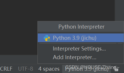 点击界面的右下角的 interpreter setting(环境变量设置)