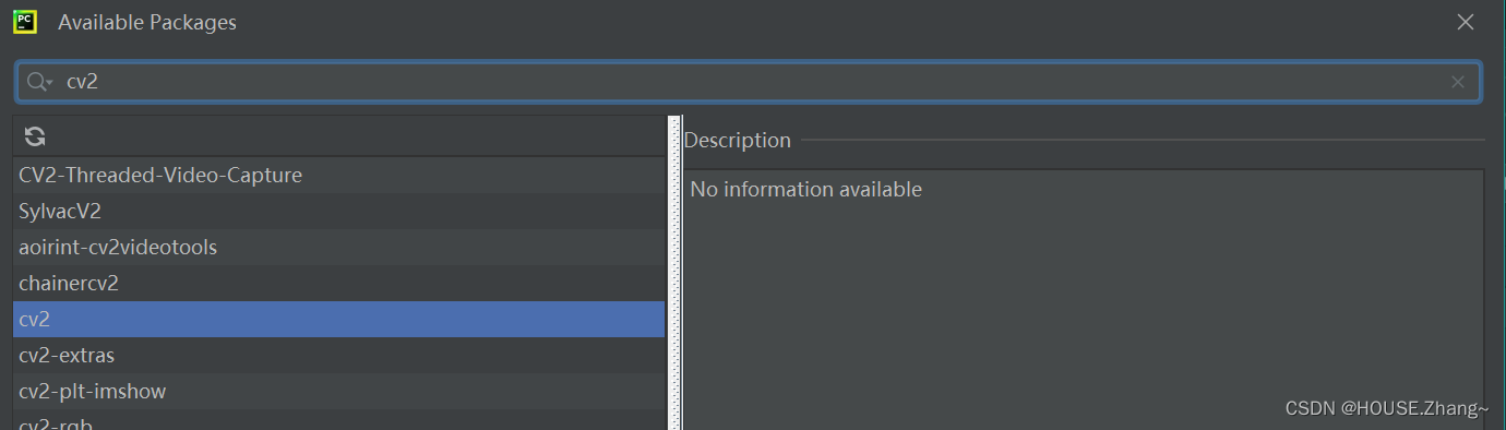 输入cv2,然后发现没有,然后我输入安装的opencv-python,发现就可以用了