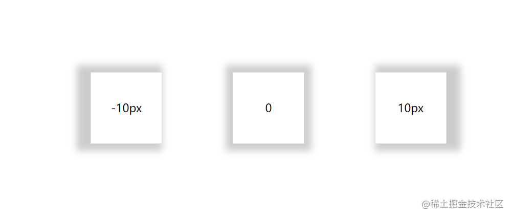 spread: 可选的,阴影的扩展半径,阴影的原理其实就是复制一个当前元素出来,这个属性就是控制的复制出来的元素的半径,一定要记好了啊,支持负数,如果为负数,复制出来的元素就会比原元素小,下图表示了在其他参数相同,spread不同情况下的不同表现