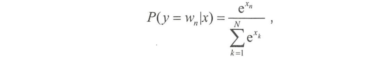 其中x代表N维的原始输出向量,xn为在原始输出向量中,与单词wn所对应维度的取值。