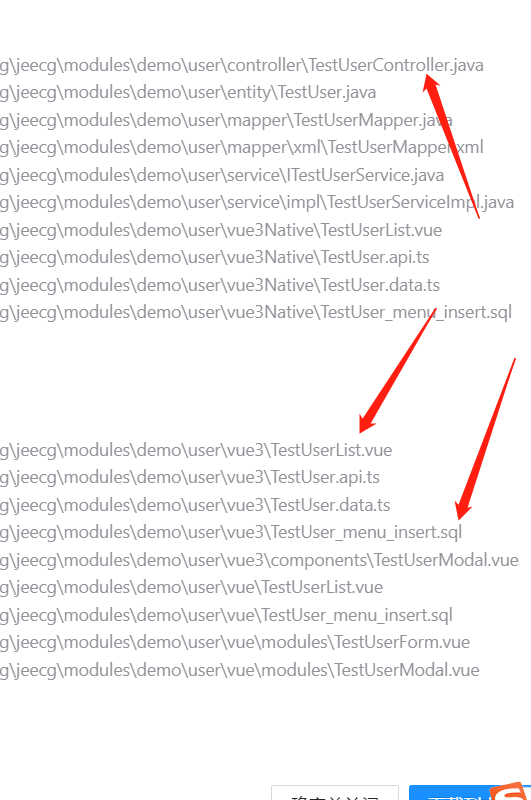 点击“开始生成”,会生成前、后端代码和加入菜单sql。