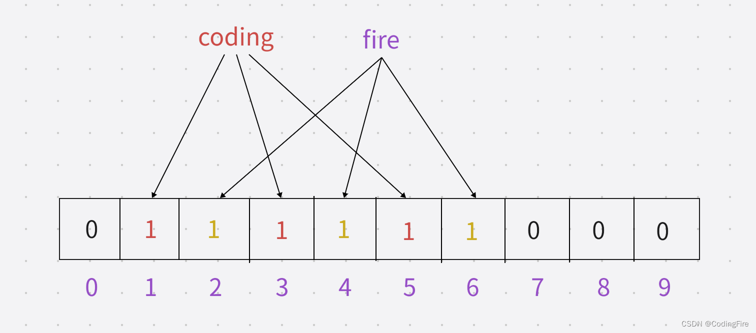 现在添加了codingfire单词在布隆过滤器中的状态: