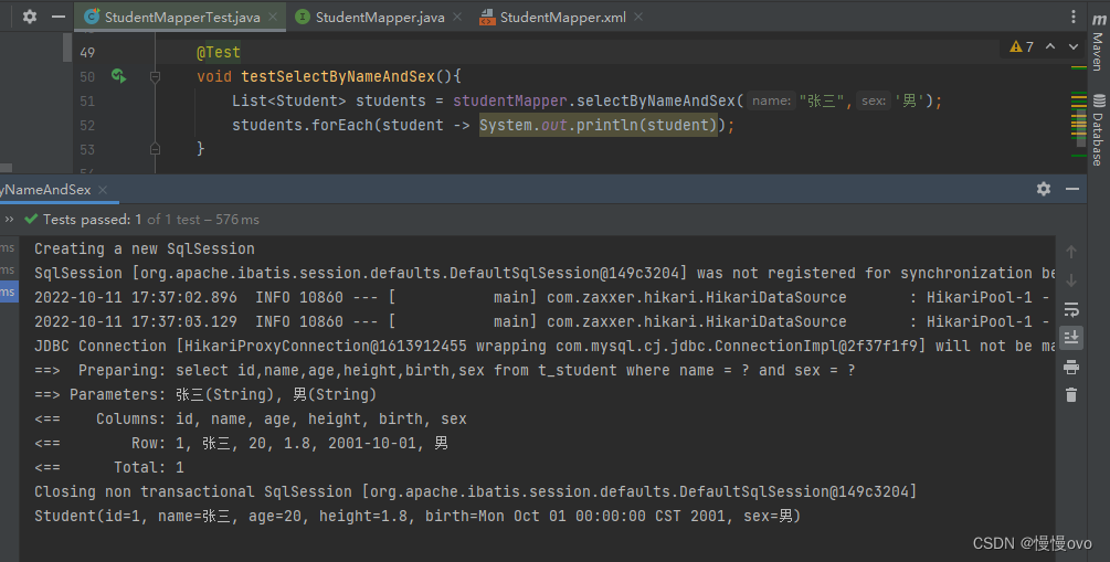 这里就不多写了,详细可以看我博客另外一条文章:花了几天整理了学完的Mybatis框架(内含源码及面试题)_慢慢ovo的博客-CSDN博客