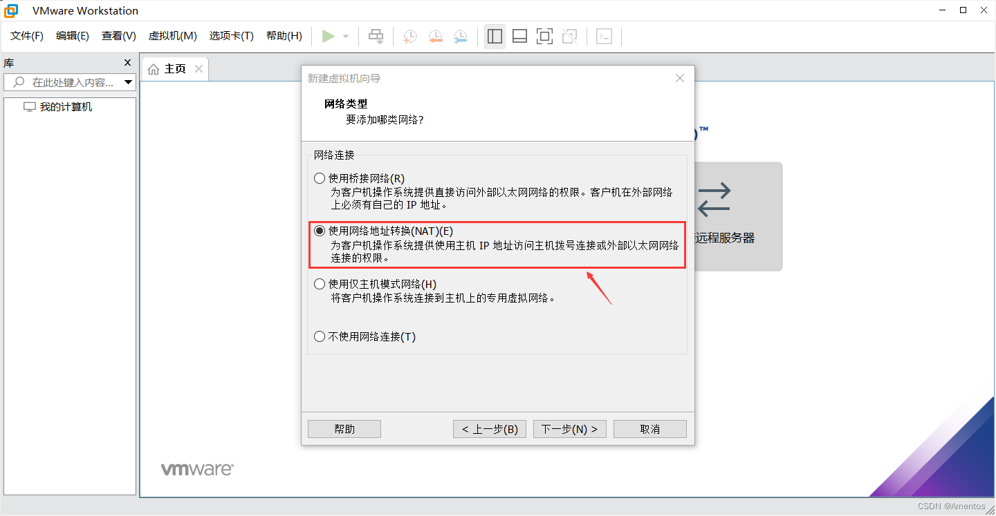 9. 网络类型选择 "使用网络地址转换NAT" 。