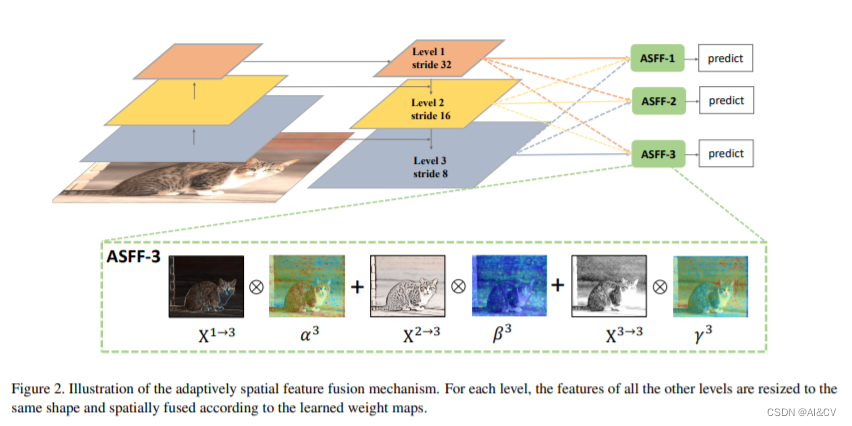 多尺度特征特别是特征金字塔FPN是解决目标检测中跨尺度目标的最常用有效的解决方法,但是不同特征尺度中存在的不一致性限制了(基于特征金字塔的)single-shot检测器的性能。本文提出一种特征金字塔融合方法ASFF,它自动学习去抑制不同尺度特征在融合时空间上可能存在不一致;