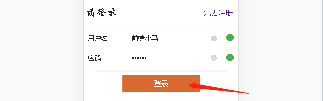 <template><!-- 登录页面 --> <div class="log"> <span class="login">请登录</span> <span class="reg"> <router-link to="/register">先去注册</router-link> </span> <!-- mint ui的表单组件 --> <mt-field type="text" label="用户名" placeholder="请输入用户名" v-model="name" :state="nameState" @blur.native.capture="checkName"></mt-field> <mt-field type="password" label="密码" placeholder="请输入密码" v-model="pwd" :state="pwdState" @blur.native.capture="checkPwd"></mt-field> <hr style="width: 85%" /> <mt-button class="btn" type="primary" size="large" @click="checkForm">登录</mt-button> </div></template><style scoped>.log .reg { font-size: 18px;}.log .login { font-size: 24px; font-family: "楷体"; font-weight: 700; margin-left: 5px; margin-right: 210px; line-height: 80px;}.log { margin-top: 20%;}.log .btn { background-color: #d86931; width: 190px; border-radius: 0; border: 0; margin: auto;}.log .btn1 { background-color: white; border: 2px solid #d86931; color: #d86931; width: 190px; margin: auto; margin-top: 30px;}</style>><script>export default { namespaced: true, data() { return { name: "", //双向数据绑定 用户名输入框 nameState: "", //处理用户名输入框的动态更新 pwd: "", pwdState: "", }; }, methods: { // 封装验证方法: // 1.验证用户名 checkName() { //事件处理函数:处理点击按钮验证表单 let reg = /^[a-zA-Z0-9\u4E00-\u9FA5]{2,6}$/; //2-6位的数字、字母、汉字 if (reg.test(this.name)) { this.nameState = "success"; return true; } else { this.nameState = "error"; return false; } }, // 2.验证密码 checkPwd() { let reg = /^\d{6}$/; if (reg.test(this.pwd)) { this.pwdState = "success"; return true; } else { this.pwdState = "error"; return false; } }, checkForm() { // 点击登录按钮后调用此方法,同时验证用户名和密码 if (this.checkName() && this.checkPwd()) { // 发送登录(post)请求 this.axios .post("/login", `username=${this.name}&password=${this.pwd}`) .then((result) => { console.log(result); if (result.data.code == 200) { // 弹窗提示登录成功 this.$toast({ message: `欢迎您 ${this.name}`, position: "bottom", duration: 3000, }); // 修改vuex中用户登录状态 this.$store.commit("loginok", this.name); // 将islogin与username存入sessionStorage sessionStorage.setItem("islogin", true); sessionStorage.setItem("username", this.name); // 登录成功后直接跳转到首页 this.$router.push("/club"); } else { this.$toast({ message: "登录失败,请检查您的用户名和密码", position: "bottom", duration: 3000, }); } }); } }, },};</script>