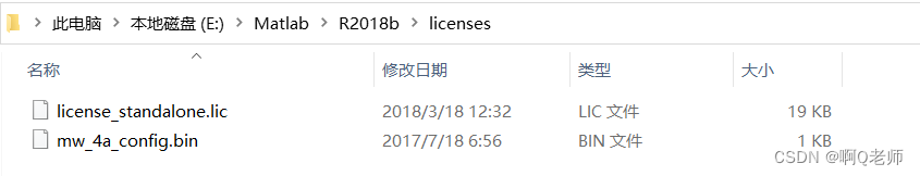 然后,打开 2018b64(中文版).zip ,再打开 crack文件夹 ,对 license_standalone.lic 进行复制,粘贴在 软件安装目录下的 licenses文件夹 ,此安装路径是 E:\Matlab\R2018b\licenses ,如下图: