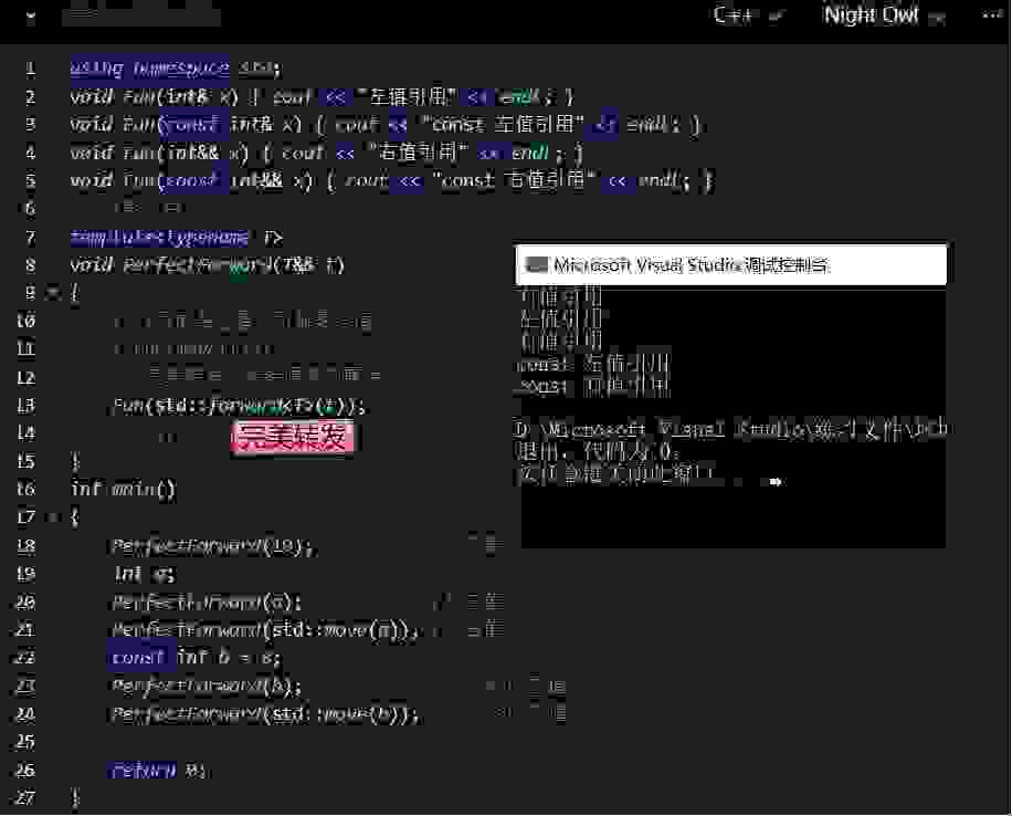 std::forward 完美转发在传参的过程中保留对象原生类型属性,当然完美转发也是需要在模板的环境下才能生效,如果不是模板,T&& t同样会被识别成右值引用。