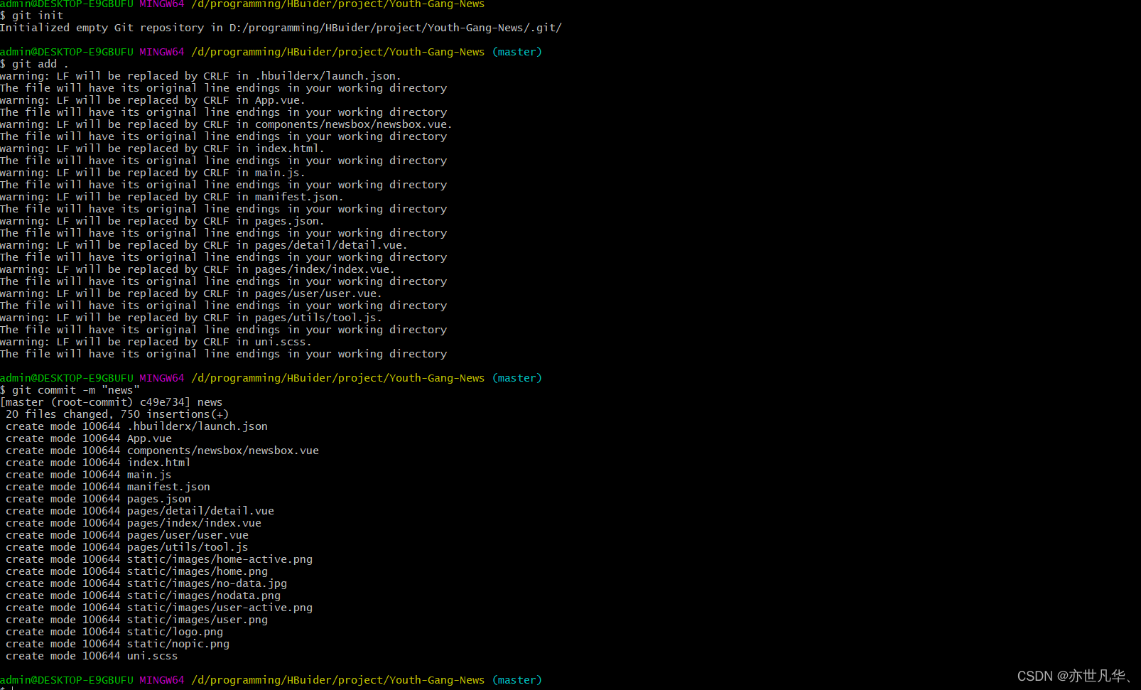 因为我在写完项目之后再推送到远程仓库的,因为仅仅是个小案例,就不再创建其它子分支了,给出项目的源地址文件:GitHub - ztK63LrD/Today-s-News: 简单的新闻列表案例 ,可自行git clone 进行到本地进行测试,如果可以的话还请一键三联或者给项目点个小星星,您的支持就是我创作的最大动力。