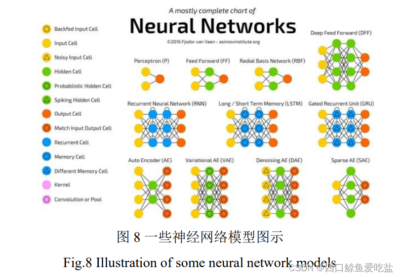 神经网络模型已经发展出多种形式,包括:卷积神经元(CNN),循环神经元(RC),长短期记忆神经元(LSTM),门控循环神经元(GRU),前馈神经网络(FFNN),径向基神经网络(RBF),霍普菲尔网络(HN)等。
