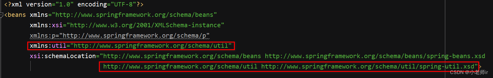 ① 在 spring 配置文件中引入名称空间 util