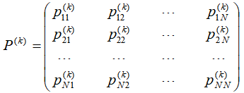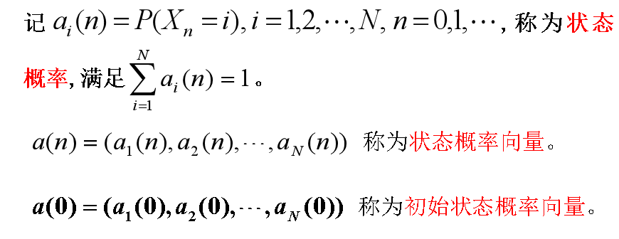 对具有N个状态的马氏链,描述它的概率性质,最重要的是它在n时刻处于状态i下一时刻转移到状态j的一步转移概率: