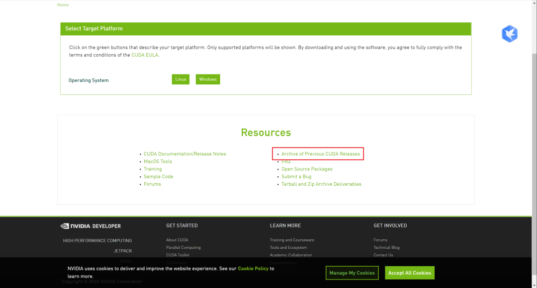 进入下方提供的网站,点击红框所示,查看以前的CUDA版本