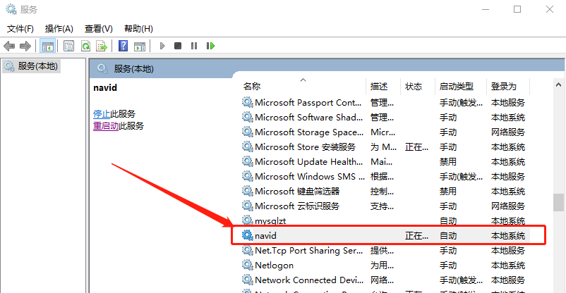 最后,我们打开服务页面(可以在搜索栏中直接输入“服务”,并在搜索结果中打开),启动在Nssm中设置好的服务项目(这个例子中,是笔者设置的navid服务项)。