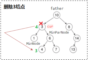 交换后,删除 3 就变成了删除 MinNode,我们需要弄清 MinNode 和 MinParNode 的指向关系:
