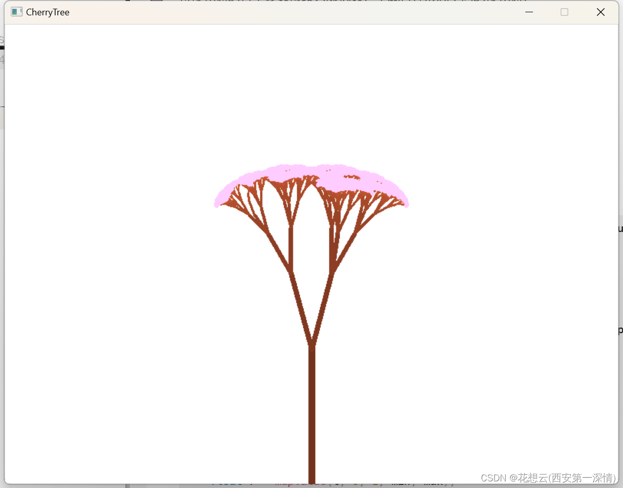 void branch(float x_start, float y_start, float length, float angle, float thickness, int generation){//....if (isShowAnimation) // 如果为1,绘制樱花树生成的过程动画{FlushBatchDraw(); // 批量绘制Sleep(1); // 暂停}} 效果图