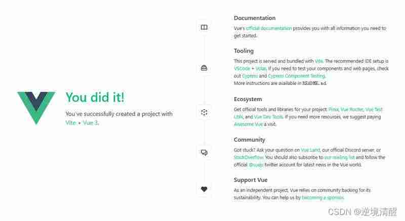 就可以看到刚才创建的基于Vite + Vue.js的项目欢迎页面,如图所示。