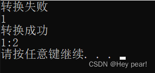 class A{public: virtual void f(){}public: int _a = 0;};class B : public A{public: int _b = 1;};// A*指针pa有可能指向父类,有可能指向子类void fun(A* pa){ // 如果pa是指向子类,那么可以转换,转换表达式返回正确的地址 // 如果pa是指向父类,那么不能转换,转换表达式返回nullptr B* pb = dynamic_cast<B*>(pa); // 安全的 //B* pb = (B*)pa; // 不安全,都是转换成功无法识别,会产生越界的风险 if (pb) { cout << "转换成功" << endl; pb->_a++; pb->_b++; cout << pb->_a << ":" << pb->_b << endl; } else { cout << "转换失败" << endl; pa->_a++; cout << pa->_a << endl; }}int main(){ A aa; // 父类对象无论如何都是不允许转换成子类对象的 /*B bb = dynamic_cast<B>(aa); B bb = (B)aa;*/ B bb; fun(&aa); fun(&bb); //fun(nullptr); return 0;}