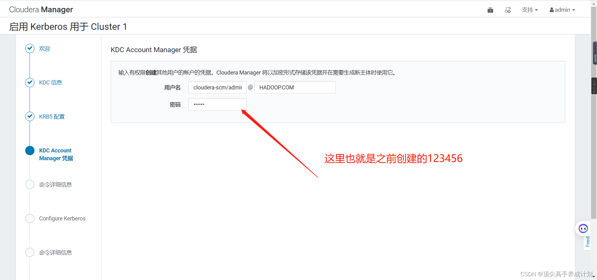 #############创建一个cm的用户#########密码随意,我设置了123456kadmin.local -q "addprinc cloudera-scm/admin"