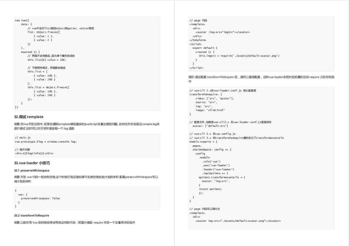 最近找到一个VUE的文档,它将VUE的各个知识点进行了总结,整理成了《Vue 开发必须知道的36个技巧》。内容比较详实,对各个知识点的讲解也十分到位。