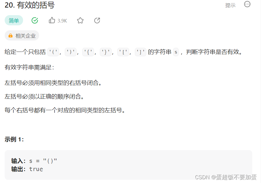 思路:先判断字符串长度,如果长度为奇数,则一定括号不匹配,直接返回false,若不为奇数,则采取以下的思路:遍历字符串,遇到左括号则入栈,遇到右括号则出栈,如果此时栈为空即没有左括号与之匹配,则返回false,让出栈的左括号与遇到的有括号匹配,若匹配失败则返回false。若匹配成功则继续遍历字符串,遍历完毕后检查栈是否为空,为空则说明全部括号匹配成功,返回true,如果不为空则说明有匹配未成功的情况返回false