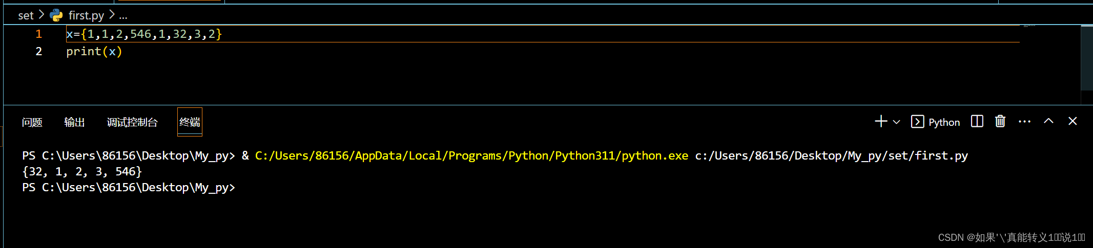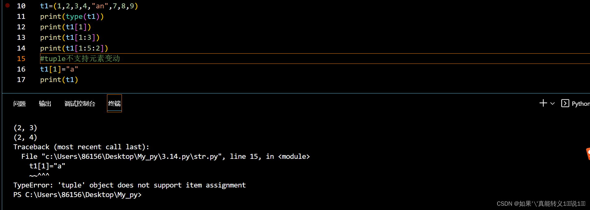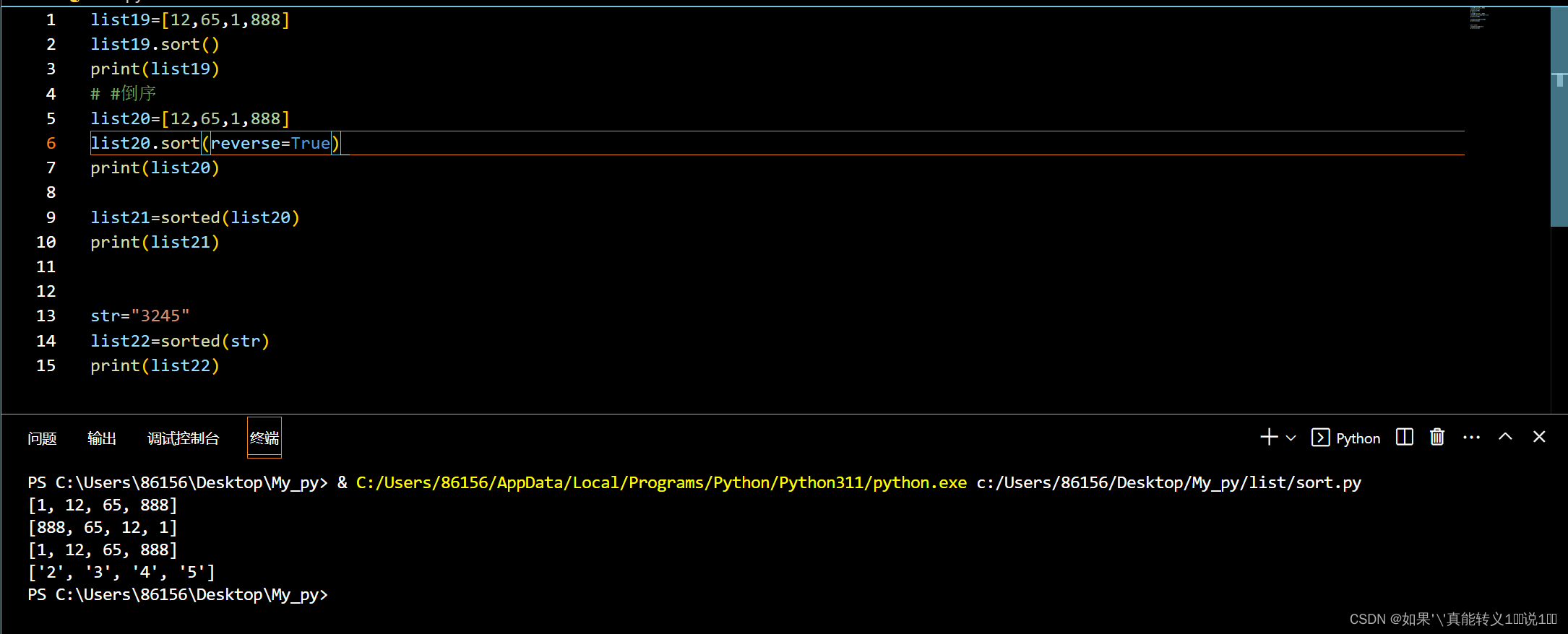 前言Python的介绍:1)语言的发展:2)特点:缺点: 在VScode 配置:安装Vscode:在cmd中检测Python的存在代码简单写一个: Python的用处:首先创建一个==后缀带有.py的文件==。输入代码: 第一节:基本了解:Python的输入与输出input()函数输入【获取用户输入的字符串】例子: print()函数输出Python缓冲 Python缩进规则:*Python3关键字(35个)**Python变量*<1>注意Python 是弱类型的语言 <2>命名规则:注意: (1)匈牙利命名法:(2)驼峰命名法:【1】大驼峰命名法:【2】小驼峰命名法 (3) Guido推荐在Python中使用的(4)==注意事项==:应避免使用以下划线开头的标识符。 <3>多个变量的赋值 *Python常量**Python注释*取消print的自动换行 *运算符*<1>Python算术运算符<2>Python比较运算符<3>Python赋值运算符<4>Python位运算【二进制】<5>Python逻辑运算符【布尔】<6>Python三目运算符‘%’格式化输出指定最小输出宽度:精度%m.nf *第二节:Python的数据类型;一、数字类型(Number):<1>【==数字类型的判断==】<2>【整数 int】[进制] <3>【浮点数 float】[书写形式][精度问题] <4>【布尔类型 bool】<5>【复数 a + bj / complex(a,b)】<6>==(数据类型转换)==: math库概述【引用】(1)【法一】利用保留字import引用库:(2)【法二】from math import (函数名):(3)好用的方法:from math(模块名称) import * 【表示导入这个库里面很多方法】 【常数----五个函数常数】 二、序列类型序列索引支持的函数:Pow 和** 的区别: 一、字符串类型-->(复合数据类型、序列类型):<1>len<2>字符串运算符(1)凭借'+' 连接两个字符串(2)凭借 '*' 多次输出某一字符串(3)凭借 方括号 '[ ]' 索引获取字符串中的字符通过索引访问字符串特定位置 S[i] (4)凭借 ' [ : ] ' 截取字符串中的一部分 【变量[头下标:尾下标]】(1)普通的片段切割(2)隔点切割 (5)int 与 not in(6) r/R--原始字符串:(7)string.format()---> 字符串类型的格式化(8)其他 <3>转义字符<4> Python中的>--str字符串--<内置方法(1)字符串大小写转换:(2)字符串搜索、替换(3)字符串分割、组合(4)字符串测试【判断字符串Str中是否含有该字符】 <5>Python三引号 二、list列表 -->(复合数据类型、序列类型):(1)什么是list列表(2)建一个list(3)访问列表中的值:(4)更新列表list里面的值(5)list列表方法:【1】list.append()--->列表末尾添加某元素对象- 方法原型参数 【2】list.clear () --->用于清空列表,类似于 del list[:]方法原型:删除所有元素 【3】list.copy() --->复制列表,类似于 a[:]。方法原型:返回值 【4】list.insert() --->指定对象插入列表的指定位置方法原型: 【5】list.pop () ---> 用于移除列表中的一个元素(默认最后一个元素),并且返回该元素的值。方法原型:运用 【6】list.remove ()--->用于移除列表中某个值的第一个匹配项。(1)方法原型(2)==区别于pop方法==的是:(3)还能当做检查元素在不在 同与in、not in 【7】list.reverse ()--->反向列表中元素方法原型:同样起到翻转作用的是:list4 [ : :-1] 【8】list.count()--->统计个数方法原型: 【9】list.extend ()--->在列表末尾一次性追加另一个序列中的多个值方法原型: 【10】排序--List.sort (6)列表转换成字符串【1】join方法【2】for循环一个一个的转换然后加 (7)翻转字符串单词:讲个特殊的 三、tuple元组-->(复合数据类型、序列类型):(1)什么是tuple元组<1>*特别的是*<2> 创建空元组<3> 索引依旧 (2)元组和列表的区别:(3) 可以用切片解出来,但不能换元素(4)元组可用函数:特别的: (5)元组和列表区别: 四、set集合 ---> 复合数据类型、无序组合<1>.内置方法:(1)set.add(x) ---> 如果x不存在set中,那就添加进去(2)set.clear( )移除set中所有元素:(3)set.copy( )--->拷贝一个集合(4)set.pop()--->随机移除一个元素(5) set.discard (x)--->如果x在集合 Set中,移除该元素;如果x不在,不报错(6)set.remove ()--->如果x在集合S中,移除指定元素;不在产生 KeyError异常(7)set.isdisjoint ( )--->判断两个集合是否包含相同的元素,如果没有返回 True,否则返回 False。(8)常用的len ,in/not in <2>.set.操作符and内置方法使用 --->表示同种能力的办法:【1】【用于返回除去两个或更多集合中都共有的元素,即差集 ( - )。】《1》Set-T或 Set.difference(T) ---->==返回一个新集合==,包括在集合 Set 中不在集合T中的元素(1)Set.difference(T)方法原型:(2)返回值(3)代码演示: 《2》Set-=T或Set.difference_update(T) --->==更新集合Set==,包括在集合S中不在集合T中的元素(1)Set.difference_update(T)方法原型:(2)返回值:(3)代码演示:(4)对比difference 和 difference_update(T) 【2】【用于返回两个或更多集合中都包含的元素,即交集( & )。】《1》Set &T 或Set.intersection(T) --->==返回一个新集合==,包括同时在集合 S 和T中元素。(1)方法原型:(2)返回值:(3)代码演示 《2》Set&=T或Set.intersection update(T) --->==更新集合S==,括同时在Set和T中元素(1)方法原型:(2)返回值: 【3】【返回两个集合中不重复的元素集合,即会移除两个集合中都存在的元素,即补集 ( ^ )】《1》Set^T或Set.symmetric_difference(T ) --->移除两个集合中都存在的元素。(1)方法原型(2)返回值(3)特殊的set_x ^ set_y 《2》Set=^T或Set.symmetric_difference_updat(T)---->更新集合S,包括集合ST中元素,但不括同时在其中的元素(1)方法原型:(2)注意(3)代码举例: 【4】【一个新集合,包括集合Set和T中所有元素。即并集( | )】《1》S|T或S.union(T) --->集合Set和T中所有元素(1)方法原型:(2)返回值(3)代码: 《2》Set=|T或Set.update(T)--->更新合Set,括Set和T中所以元素[给集合添加元素](1)方法原型:(2)返回
