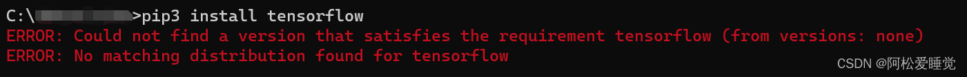 ERROR: Could not find a version that satisfies the requirement tensorflow (from versions: none)ERROR: No matching distribution found for tensorflow 解决方法