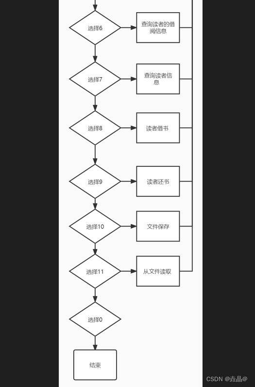 2)功能:接受两个形参:读者链表地址和图书链表地址,用读者的编号进行匹配,找到该读者后,用图书的编号进行匹配,进行借书,否则返回
