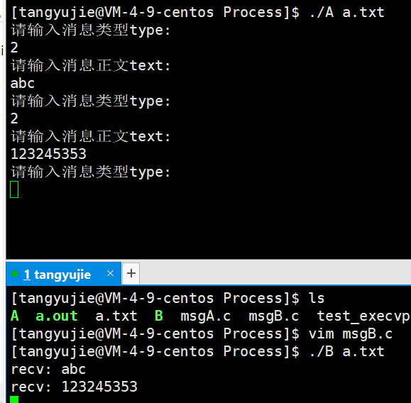案例实操: 现在存在 A B 两个进程, 通过消息队列, 实现 A 向 B 发送消息, B 接收并且打印消息.