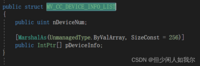 可以看到VS源码中多了一行代码[MarshalAs(UnmanagedType.ByValArray, SizeConst = 256)],这里的MarshalAs在VS里官方的注释是指示如何在托管代码与非托管代码之间封送数据,那么有牵扯了两个名词。通过百度百科得到以下总结